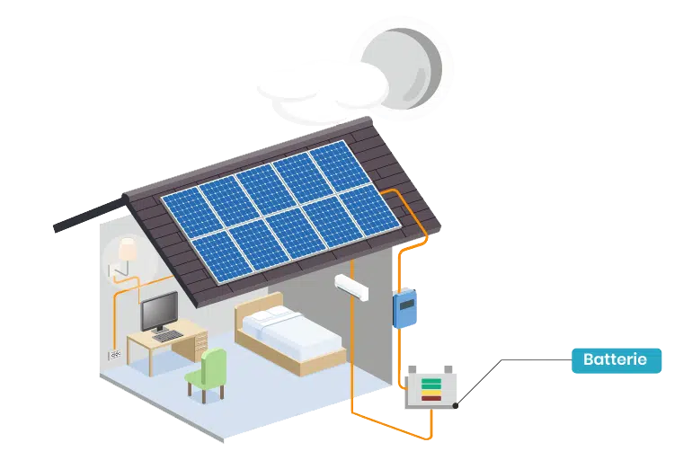 Les batteries solaires absorbent l’électricité excédentaire lorsque que le système photovoltaïque produit plus d’énergie que votre habitation en consomme. Elles peuvent être installées pour stocker de l’énergie pour plus tard, en cas de mauvais temps ou simplement pour la nuit.