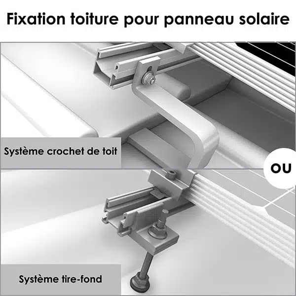 La structure surimposée se compose de rails sur lesquels sont posés les panneaux solaires. En fonction du type de toiture, il existe deux types de fixation de rails :