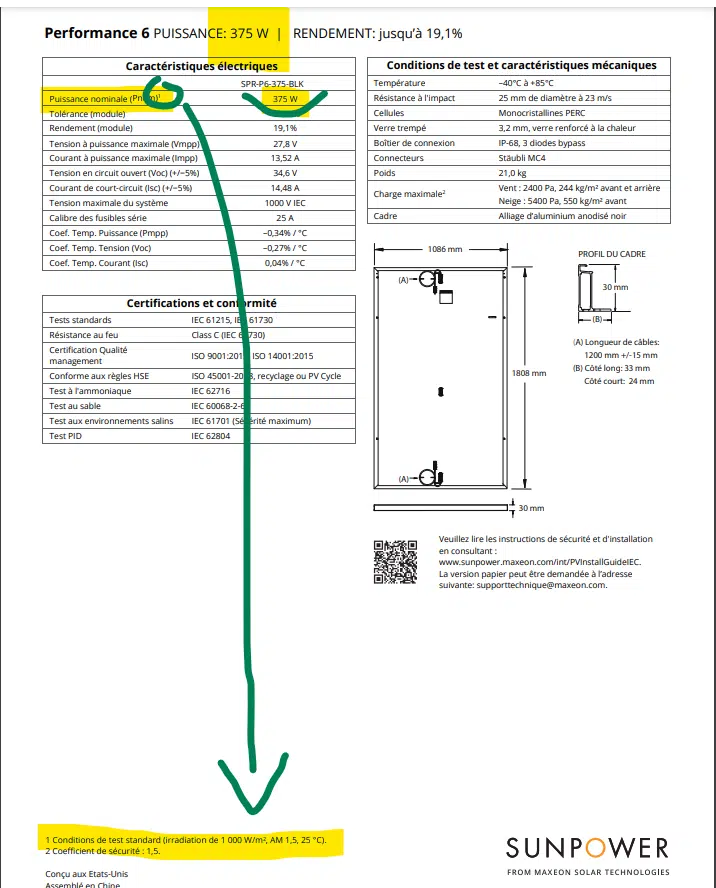 STC/NOCT, 1 Panneau = 2 Puissances Crêtes différentes